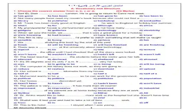 جميع امتحانات اللغة الانجليزية للصف الثالث الثالث الثانوى من 2002 الى2020 لمصر والسودان دور اول وثانى