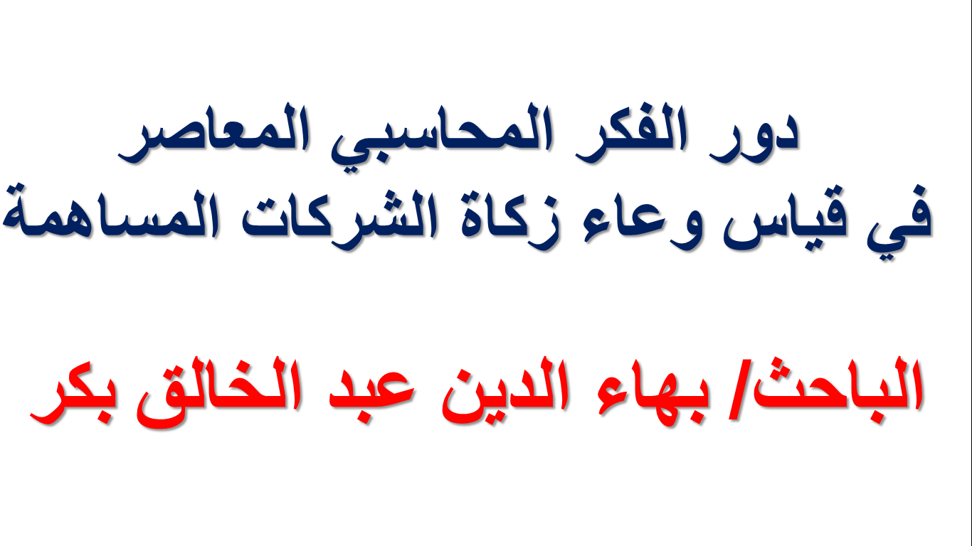دور الفكر المحاسبي المعاصر في قياس وعاء زكاة الشركات المساهمة الباحث بهاء الدين عبد الخالق بكر
