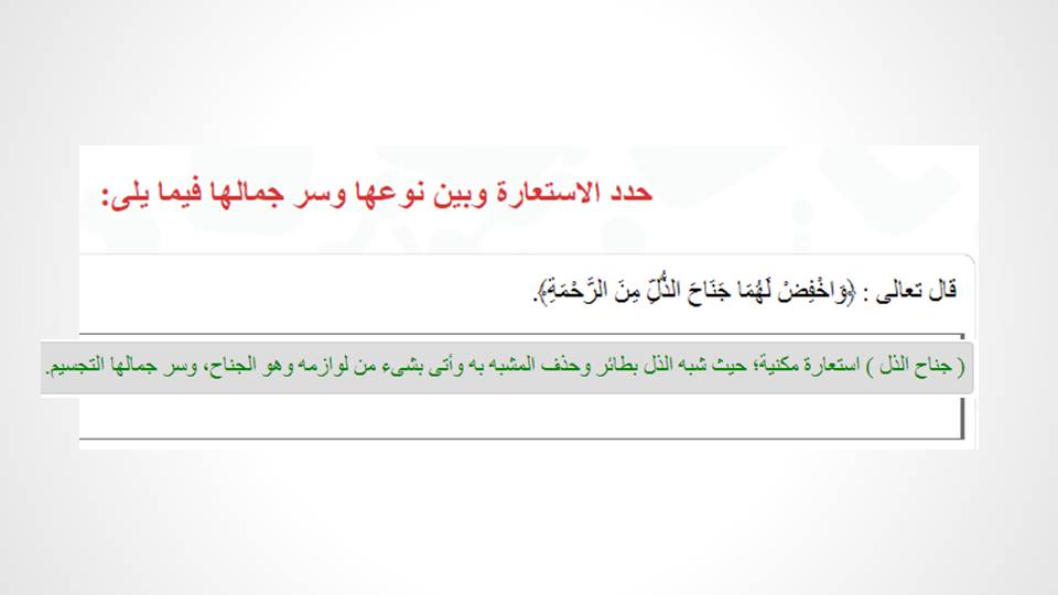 حل تدريبات الاستعارة موضوع مباحث علم البيان ص 63 المصدر السعودي