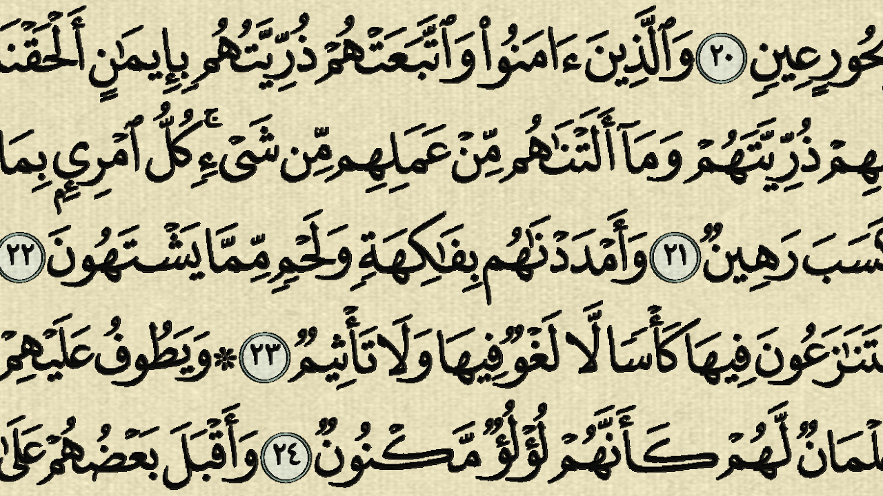 شرح وتفسير سورة الطور Surah At Tur من الآية 21 إلى الآية 31 معاني الأسماء ومعاني الكلمات وتفسير القرآن الكريم