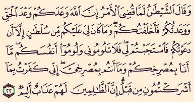 Quran Surah Ibrahim 22 Qs 14 22 In Arabic And English Translation Alquran English