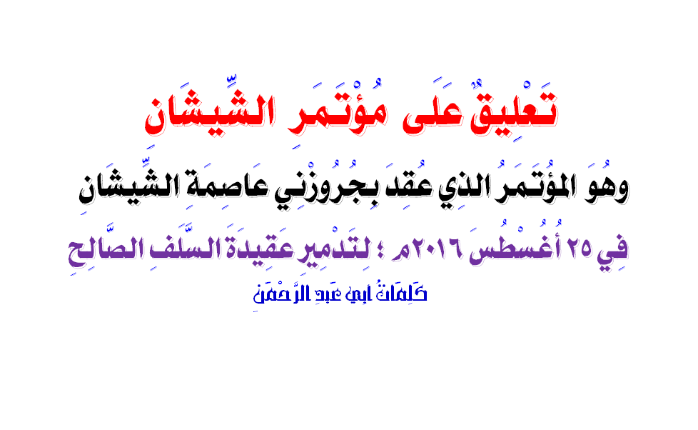 تعليق على مؤتمر الشيشان المؤتمر الذي عقد ب جروزني عاصمة الشيشان لتدمير عقيدة السلف الصالح